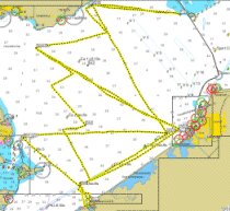 De OVD1 gerond (eigenlijk de OVD-3, maar ik bleek niet de enige die de verkeerde boei te pakke had) Er komen nog een aantal schepen achter mij aan, maar die liggen ruim een half uur achter: het gaat dus goed. De halfwinder naar stuurboord gebracht.