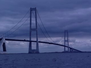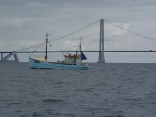Er staat een windje uit het westen met kracht 4, een mooi wind om ons naar boven te brengen. Als wij de haven uitvaren zien wij de brug over de Grote Belt, of liever gezegd over de Oster Renden en Vester Renden al liggen. Het gedeelte over de Vester Renden heeft volgens de kaart een doorvaarthoogte van 18 meter, over de Oster Renden is deze 65 meter. Wij kiezen voor zeker en varen daarom een beetje om en veel belangrijker, verlizen daarmee ook hoogte op de koers naar Kerteminde.