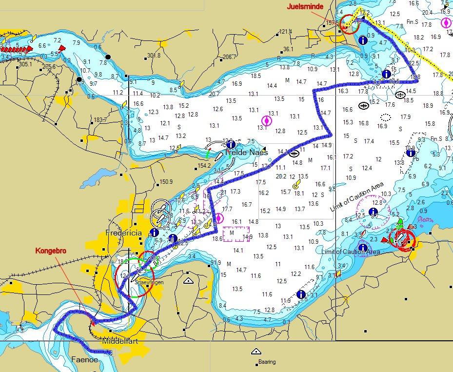 De soep smaakte meer dan uitstekend, want het korte tripje naar Middelfart werd dankzij de matige wind, die ook nog eens uit de verkeerde (zzw) hoek kwam, een lange dag. Het was inmiddels bijna 18:00 uur.