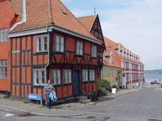 foto: Hettie voor een karakteristiek deens huisje, hier in Middelfart