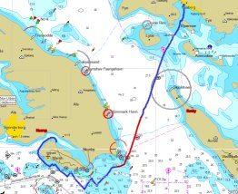 Na deze klus maar eens zitten spelen met de stuurautomaat. Tot deze vakantie is deze maar heel weinig gebruikt, maar tijdens deze vakantie steeds meer ontdekt. Het blijkt dat ik met de plotter heel gemakkelijk een route in kan stellen die dan door de stuurautomaat gevolgd kan worden; heel grappig.