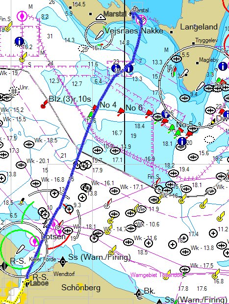Dinsdag 8 juli 2008 - Laboe - Mastral 31,8NM(33,6 log) Het is gisteravond wat laat geworden want wij hadden de buren op bezoek. Lex en Marga waren 7 weken in Denemarken geweest, het was hun tweede Denemarken reis. Ze hebben ons het eea verteld en een paar boekjes gegeven met informatie over verschillend havens. Vanochtend eerst maar even boodschappen gedaan, waarna wij hebben ontbeten. Na de afwas nog even een volle tank diesel gehaald; dat viel alles mee: nog maar 27,5 ltr diesel verstookt met al dat gemoter (18 uur). Het miezerde en de lucht zag zwart om ons heen, dus wij zijn in vol ornaat vertrokken. Niet echt het vakantieweer wat je zou wensen, maar je hebt het er maar mee te doen. Niet veel later leek het weer toch wat vriendelijker te worden en hebben wij de halfwinder opgezet. Wij koersen af op Marstal, dat is een koers van ongeveer 24° naar het eiland Aero. De wind staat ZW met een kracht 4, uitschieters naar 5. Na een kwartier begon het helaas weer te dreigen en hebben wij de halfwinder maar weer binnen gehaald. Dat bleek wederom een goede keus, want de bui met bijbehorende wind kwam er ook aan. Daarna hebben wij heel veel buien achter ons langs zien gaan, maar wij hebben daar niet veel meer dan een paar spetters van gehad. Soms moet je gewoon geluk hebben. Uiteindelijk hebben wij ook best veel met een korte broek en T-shirt aan boord kunnen zitten. Onderweg nog wat grote schepen tegen gekomen. Naarmate wij dichter bij Aero en Langeland komen is de kustlijn ook goed te zien. Heel mooi zijn de kliffen van Aero en Langeland als deze in het zonnetjes liggen en dat was uiteindelijk best veel. De stuurautomaat heeft zijn dienst weer bewezen, want die heeft het grootste gedeelte van de 35 mijl voor z’n rekening genomen. De ontdekking van deze vakantie, want hiervoor hebben wij hem eigenlijk maar weinig gebruikt. Bij Marstal aangekomen is het van belang het aanloopgeultje naar de haven goed te volgen, want daar buiten is het echt niet diep genoeg. Vlak voor de haven de zeilten gestreken en klaar om de haven in te varen. Er lag nog een groot vrachtschip te manouvreren, waar wij uiteindelijk voor langs konden de haven in. Dit tot groot ongenoegen van de matroos op het voordek, want die vond dat maar niets en dat liet hij weten ook. Wij zijn nog steeds van mening dat we het netjes en verantwoord hebben gedaan. Nadat tevergeefs twee plekken hebben geprobeerd, maar wat niet lukte omdat wij aan de grond liepen hebben wij uiteindelijk toch een mooie plek in het lieflijke haventje gevonden. Na een maaltijd aan boord zijn wij nog even het plaatse Marstal in gelopen; een leuk plaatsje wat erg vriendelijk aan doet met veel huisjes die geschilderd zijn in rood/bruin en staalbruin. Het ijsjes van de plaatselijk ijssalon smaakte uitstekend. Morgen blijven wij lekker nog een dagje liggen en zijn wij van plan de fietsen uit de bakskist te halen om het eiland te verkennen.v