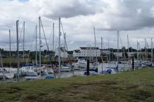 Na de koffie hebben wij, voordat wij Woodbridge in zijn gegaan, een bezoek aan de Tide Mill gebracht. Een alleszins aardige engelse heer heeft ons uitgebreid verteld over de enige nog werkende getijde molen van engeland. Helaas niet helemaal meer werkend, want de molen heeft het een paar weken geleden begeven. Waarschijnlijk is er een wig kapot gerot, waardoor de schoepen naar beneden zijn gezakt en op de bodem staan. Met een beetje geluk wordt deze echter wel weer gerepareerd. Niet alleen de molen, maar ook de directe omgeving is prachtig om te zien. Hierna zijn wij Woodbridge ingelopen. Woodbridge is echt zo’n typisch engels stadje met dito mensen. Allemaal zeer behulpzaam en graag maken ze een praatje met je. Nog wat inkopen gedaan voor het eten van vanavond en terug naar de boot. Onderweg zien wij dat er vlak bij de haven een zeilmakerij zit. Straks maar eens kijken of ze ons aan een nieuwe val kunnen helpen. Dat blijkt te lukken. Voor 50 pound heb ik een nieuwe val; een witte lijn met fluoriserende vlokken: een lust voor het oog ;-) Heerlijk op de boot gegeten en daarna nog even kijken wat de drempel momenteel met hoog water doet: ruim 2 meter, dat moet dus net lukken... Internet verbinding hebben wij nog niet, maar bij de zeilmaker nog even het laatste weerbericht bekeken. Het lijkt erop dat de storm toch iets minder wordt en dat het zondag al weer iets beter weer zal worden met een windje 4 uit ZW. Misschien gaan wij dan toch zondag weer verder, waarschijnlijk de Ore op.
