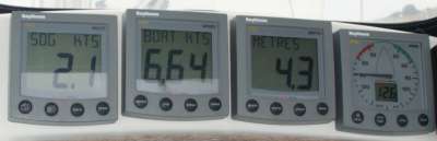 In de monding zelf hebben wij ruim 4½ knoop stroom tegen, dus wij hebben alle tijd om van het uitzicht te genieten ;-)