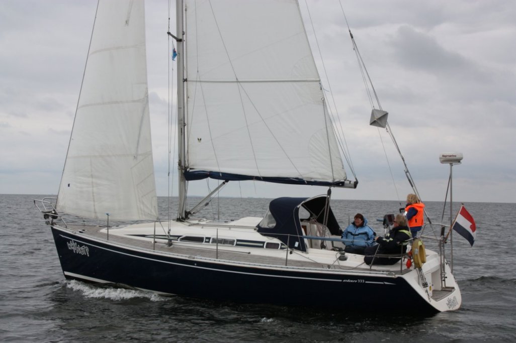Hieronder een foto van onze liefhebberij: heel veel zeilen op de Why Not